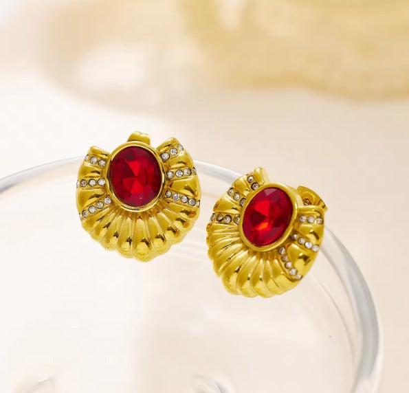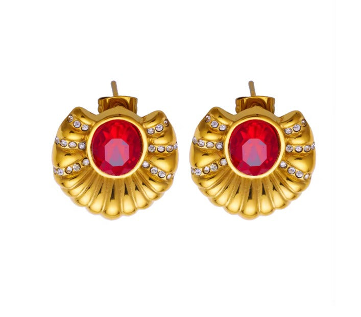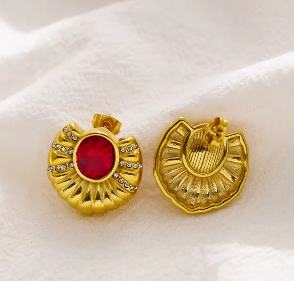 This beautiful Bold stud with red gem rhinestone is chic, it has red color gemstone on them, and it is available in Gold. The simple, elegant design makes it stand out.
