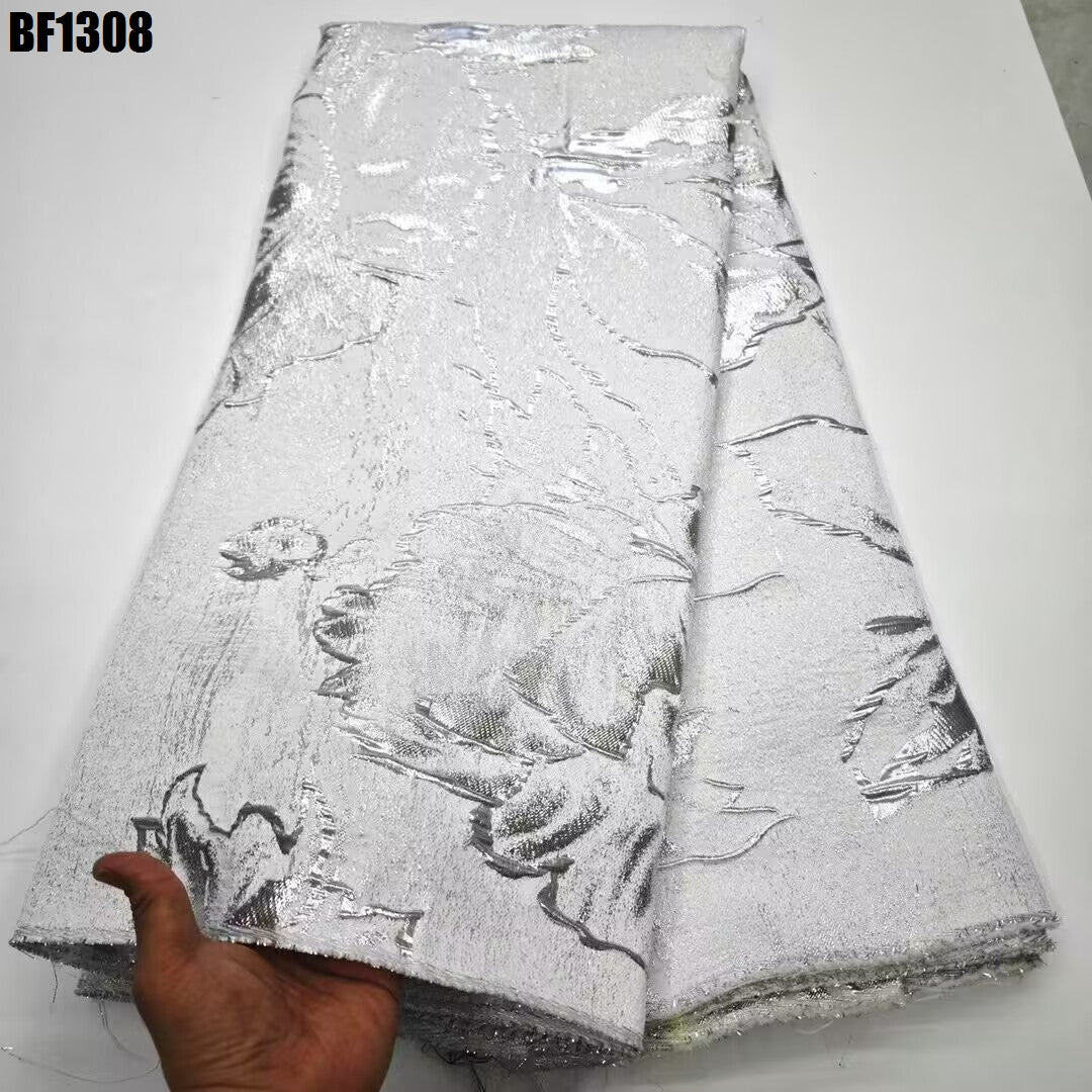 This White/Silver colored gorgeous looking brocade can also be use for any craft work. pillows, hand puppets, wedding ceremonies. suitable for a variety of events great flexibility, soft in texture which is appropriate for flowing dresses and men soft touch in trousers and kaftan. it, s durable and does not fade. it is in 5 yards. approximately 4,572 meters.