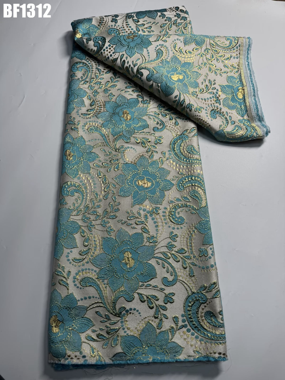 This floral gorgeous looking green and gold brocade can also be use for any craft work. pillows, hand puppets ,Bubu, kaftan, wedding ceremonies. suitable for a variety of events great flexibility., middle soft in texture which is appropriate for flowing dresses and men soft touch in trousers and kaftan. it, s durable and does not fade. it is in 5 yards. approximately 4,572 meters.