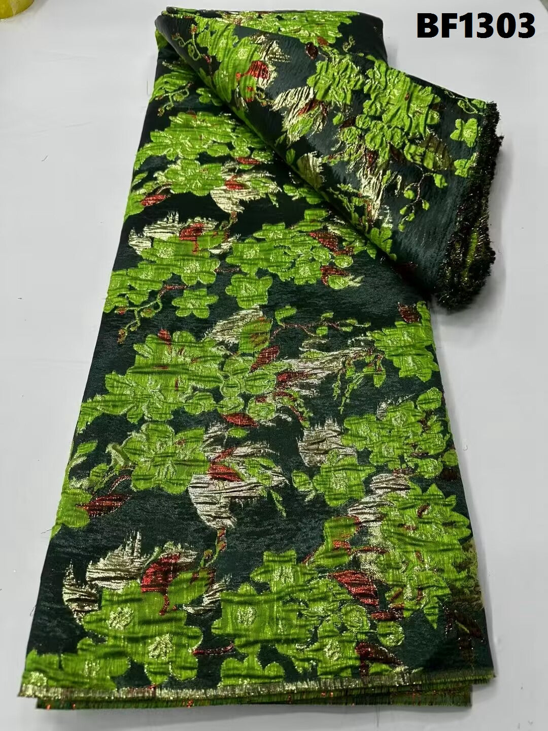 This floral gorgeous looking green brocade can also be use for any craft work. pillows, hand puppets, bubu, kaftan, wedding ceremonies. suitable for a variety of events great flexibility., soft in texture which is appropriate for flowing dresses and men soft touch in trousers and kaftan. it, s durable and does not fade. it is in 5 yards. approximately 4,572 meters.