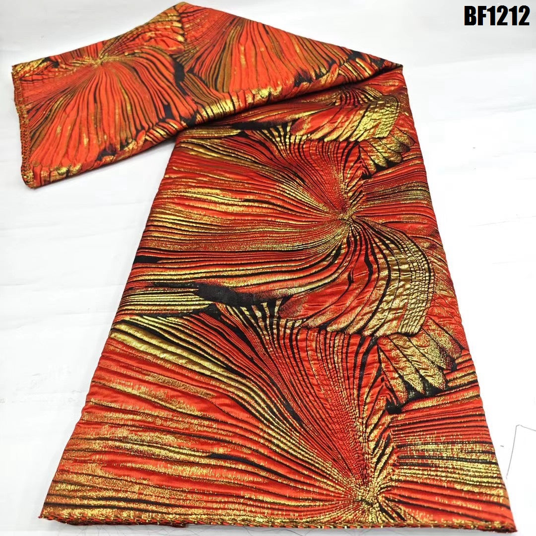 This gold/orange/black gorgeous looking brocade can also be use for, hand puppets, Bubu, kaftan, wedding ceremonies. suitable for a variety of events great flexibility., middle soft in texture which is appropriate for flowing dresses and men soft touch in trousers and kaftan. it, s durable and does not fade. it is in 5 yards. approximately 4,572 meters.