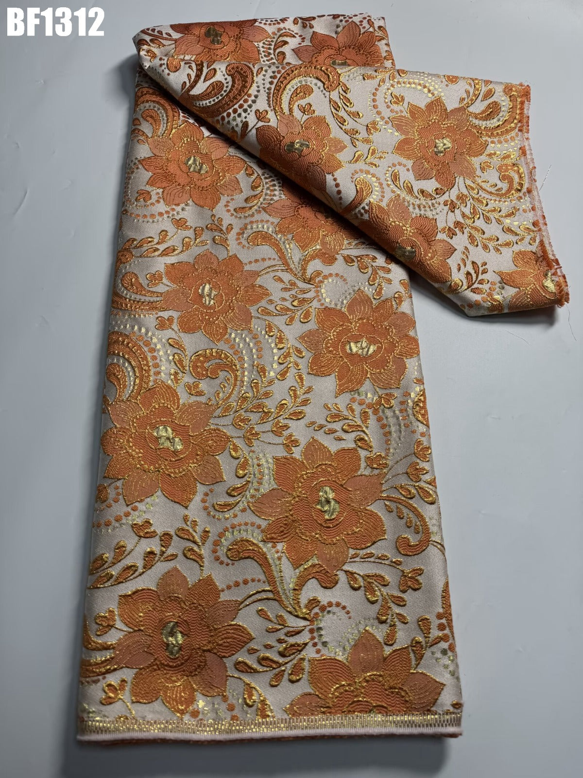 This floral gorgeous looking brocade can also be use for any craft work. pillows, hand puppets ,Bubu, kaftan, wedding ceremonies. suitable for a variety of events great flexibility., middle soft in texture which is appropriate for flowing dresses and men soft touch in trousers and kaftan. it, s durable and does not fade. it is in 5 yards. approximately 4,572 meters.