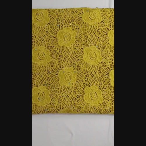 Guipure Lace Fabric, Floral Lace Fabric, Hollowed Flower Embroidery Fabric for Prom Dress, Wedding Gown and Party Dress, Bright and beautiful Olive-Yellow colour, 5yards in Width and 49 inches in Length.