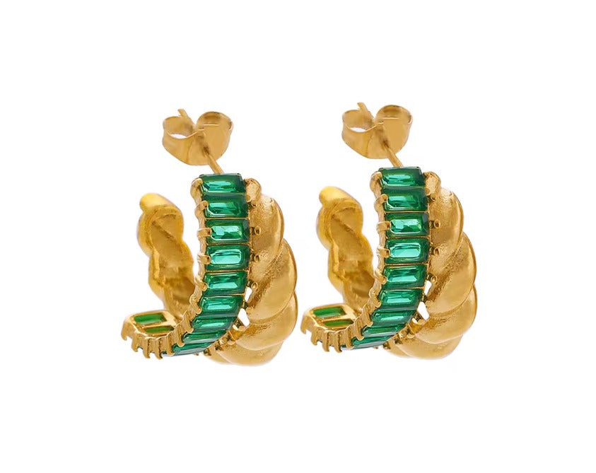 This beautiful half hoop earring with crystal stones is chic. The simple, elegant design makes it stand out.