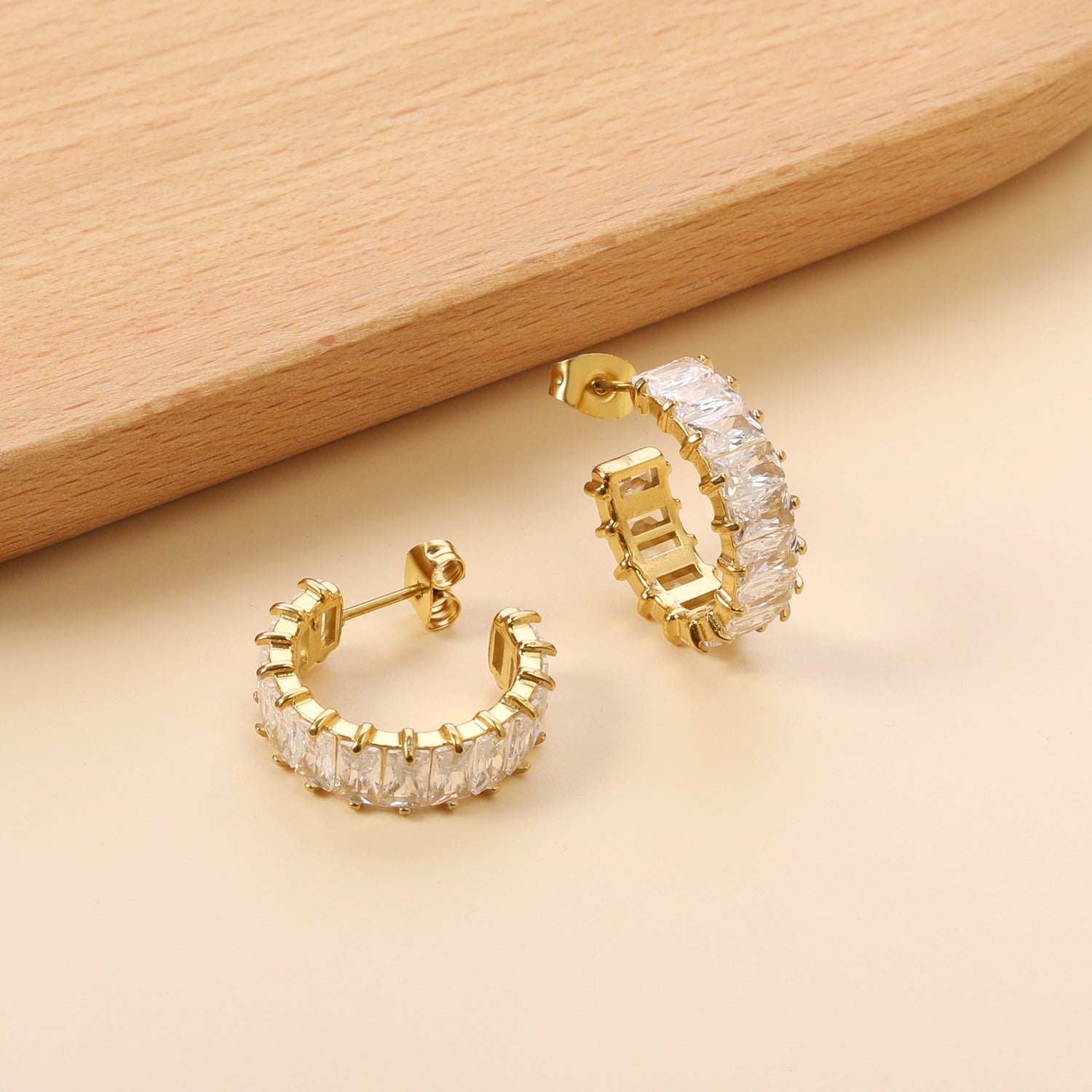 This beautiful half hoop earring with white crystal rhinestones is chic, The simple, elegant design makes it stand out.