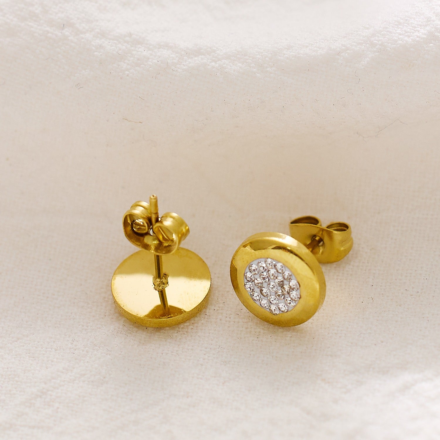 This beautiful Round stud with stones is chic. The simple, elegant design makes it stand out.