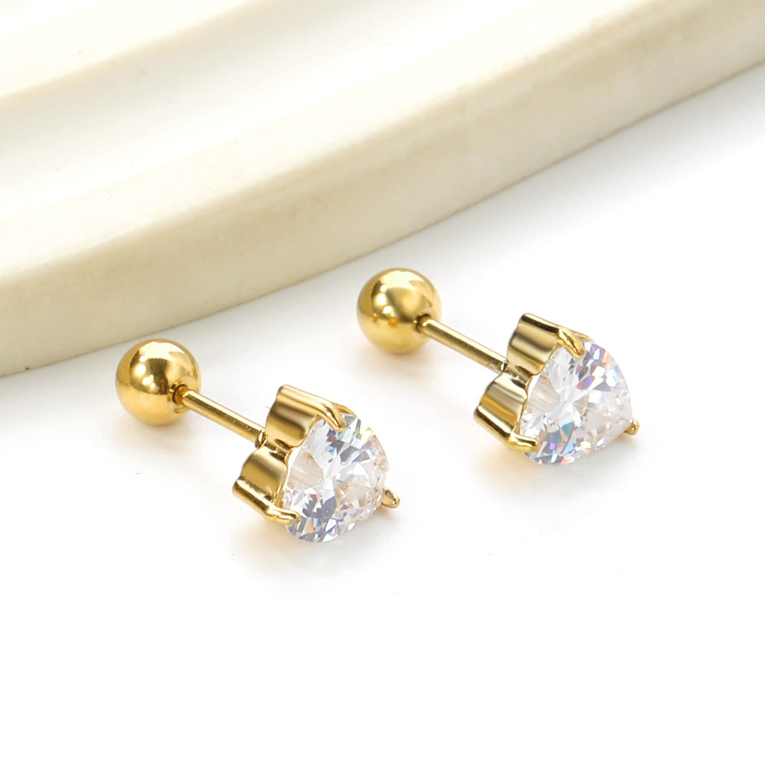 This beautiful shaped screw studs with crystal stones are super gorgeous. They are in round, heart and square crystals The simple, elegant design makes it stand out.