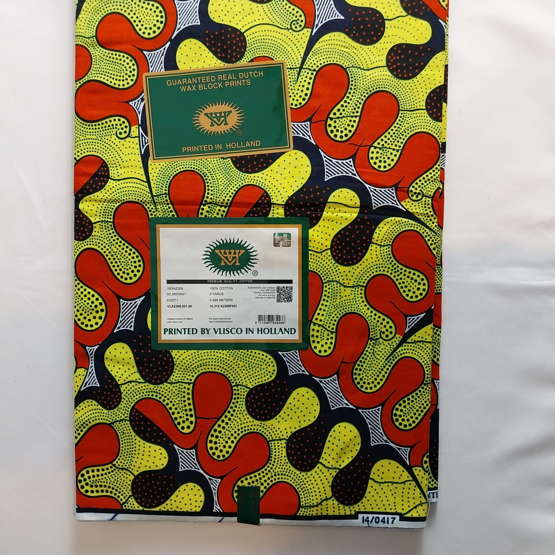 This Hollandaise vlisco, is top notch quality, it is durable and very gorgeous as seen in the pictures and video. It can be used to sew any style of your choice. It is a high quality African print. its 100% cotton as you can also see from the label. It is durable. 6 yards. .